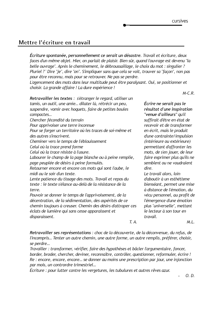| Cursives n°59 "Mettre l'écriture en travail"