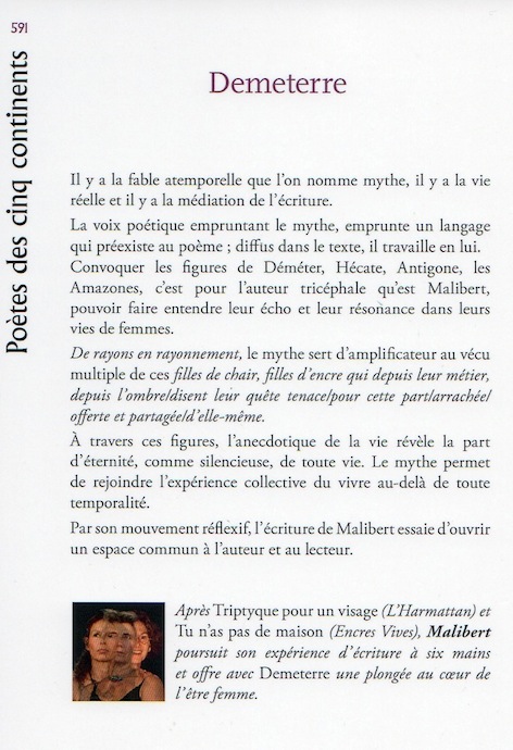 Bert : Pour Demeterre, notre recueil à paraître, on écrit à partir de la différence féminine, en même temps on ne publie pas pour un public de femmes, on s'adresse à une dimension universelle humaine mais c'est à travers un vécu féminin.