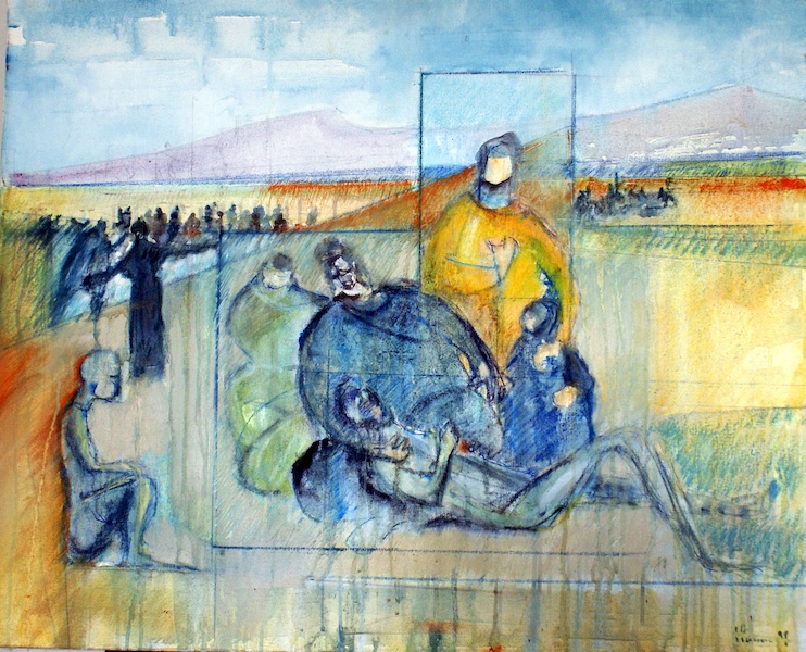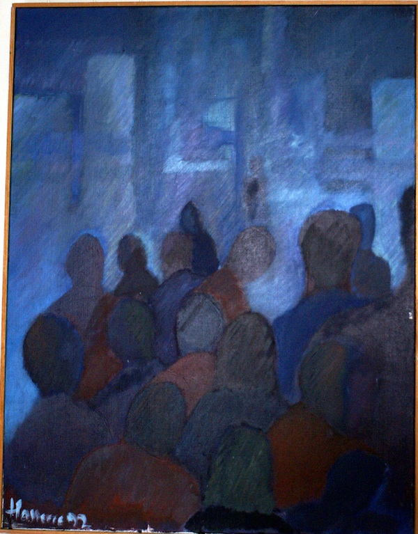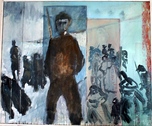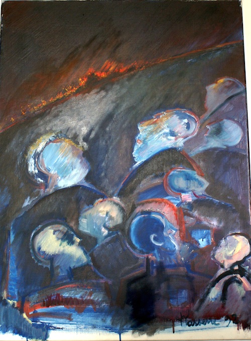 Une toile est là, inachevée, chaque jour un peu plus lointaine, Culpabilisante ; elle devient exécrable. De même, les toiles antérieures, certaines retournées contre le mur, d'autres devenues simples éléments de tapisserie qu'il faudrait d'ailleurs changer, arracher (un bon coup de blanc...).
